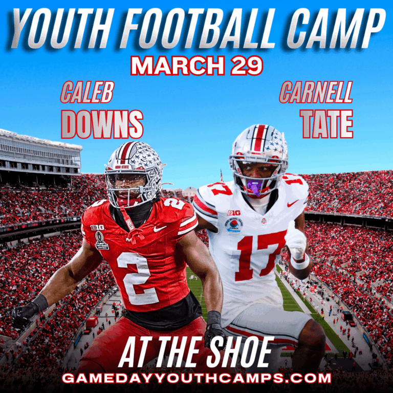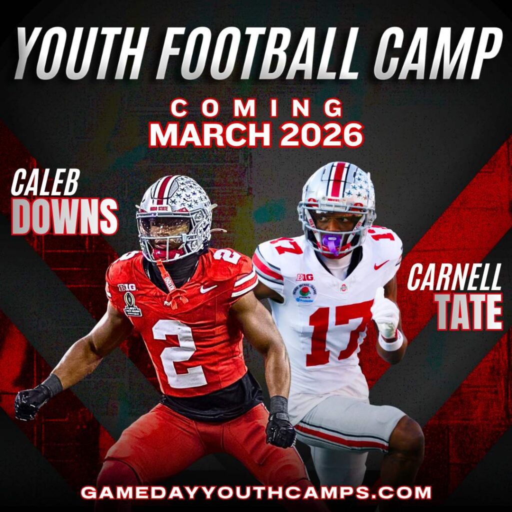 This is perfect for all skill levels and provides an unforgettable opportunity to learn from Ohio State superstars and future first round NFL Draft picks Caleb Downs, Carnell Tate, and our professionally certified coaching staff. This is a non-contact environment.